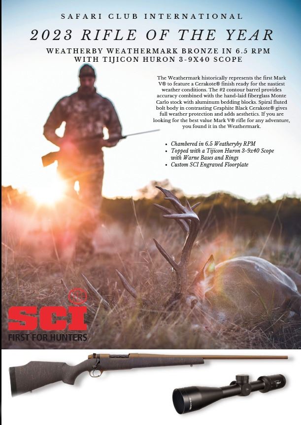 * The 2023 SCI Rifle of The Year is a Weatherby Weathermark Bronze in 6.5 RPM with Trijicon Huron 3-9x40 Scope