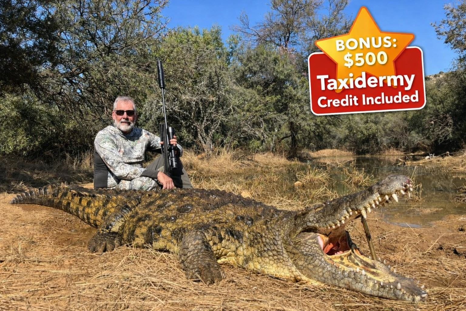 Shingalana Safaris, a family-owned operation established in 1994 by Kobus and Rina Jacobs, has generously donated a 4-day hunt for one hunter, including the opportunity to harvest one Nile Crocodile up to 10 feet. Located in Hartbeesfontein in South Africa’s Northwest Province, Shingalana Game Lodge offers exceptional hunting experiences just two hours from O.R. Tambo International Airport in Johannesburg.
