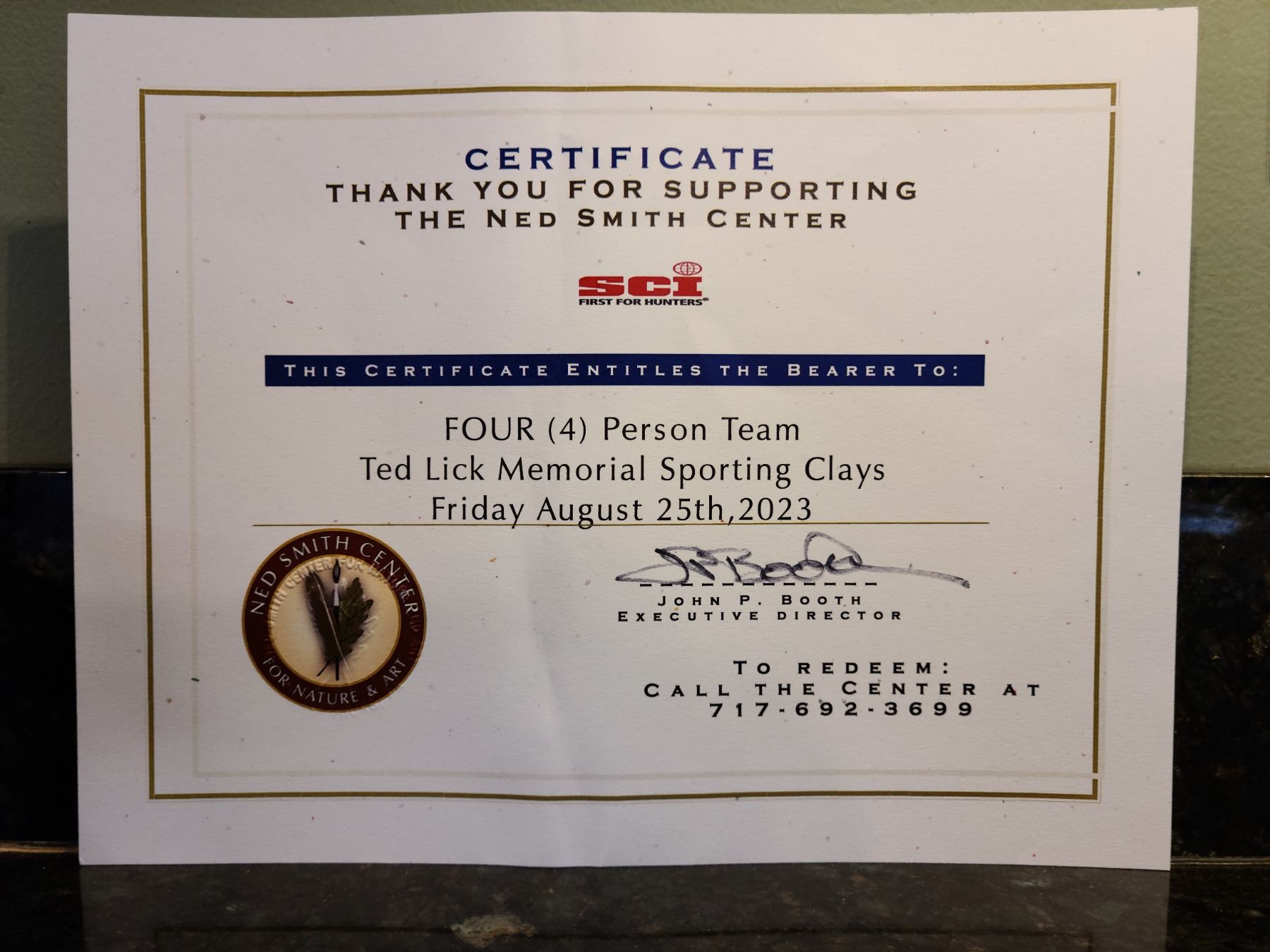 4 - Man Team for the August 25th, 2023 Ted Lick Memorial Sporting Clay Classic