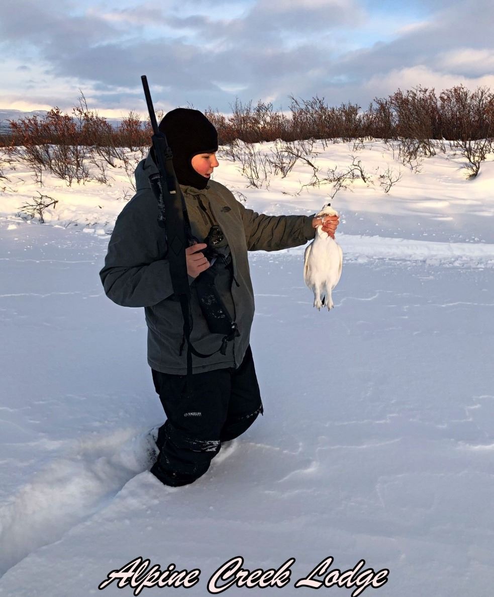 DIY Ptarmigan/Predator Hunting:  Ptarmigan hunting at Alpine Creek Lodge is good anytime the season is open.  Ptarmigan season is from Aug 10-February 15th. Alpine has a huge number of Willow Ptarmigan, with good numbers of the rarer White-Tailed Ptarmigan and Rock Ptarmigan.