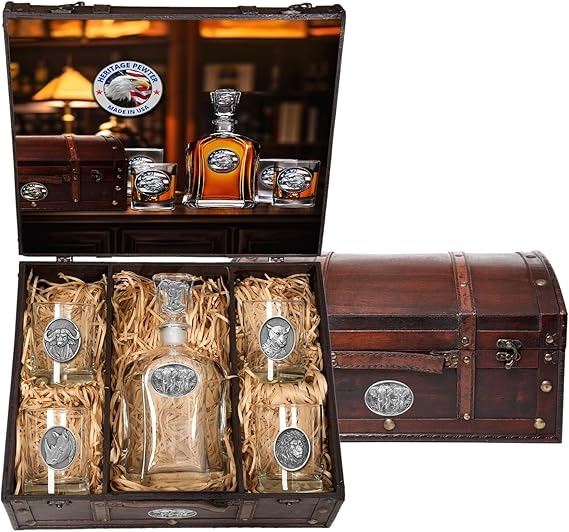 Item: The winning bidder will take home this Big 5 Decanter Set - and a KEY. This winning bidder will draw 1 of 5 keys at the end of tonight's auction. There will be a total of 5 different keys sold tonight. 1 of the 5 keys will open a lock. The person that opens the lock will win this Christensen Ridge Line 7MM REM MAG, FFT, ELEVATED II. The winner must be eligible to own a firearm.