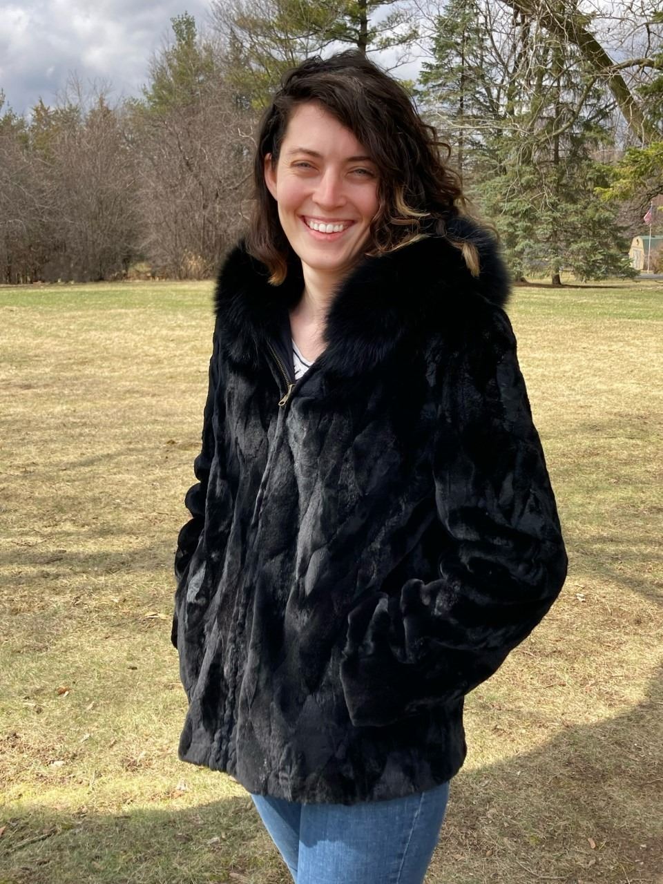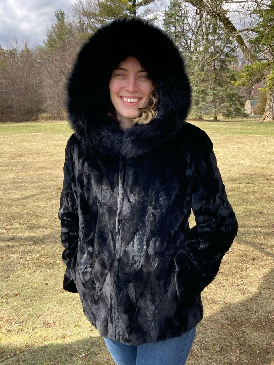 A mink coat is THE coat to many women. This alluring Black Sheared Mink Coat is MUST HAVE for every women’s wardrobe.  It is accented with a black Fox Trimmed Hood. Reverse the coat to a taffeta raincoat with a lustrous sheen that is unique to the fabric with the beautiful qualities of silk.  This coat is so versatile you can wear it for Dress Up or Dress Down.  Coat can be exchanged for the appropriate size.  Available in sizes 6-20. Value $4,495.