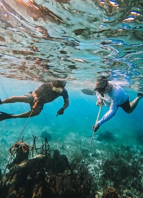 Enjoy all-inclusive reef fishing for wahoo, mahi-mahi, tuna, kingfish and giant barracudas. Bottom fish for huge snappers, groupers and amberjacks. Fly-fish or spin cast the surrounding flats for bonefish, tarpon and permit. Or you can spearfish for lobster (seasonal) and the invasive lionfish (year-round). Free dive for conch (seasonal). Snorkel the surrounding reef, and experience an array of exotic species. Scuba divers can hunt the invasive lionfish, and witness the diverse marine life of the second largest barrier reef in the world. For a small additional fee guests can troll the outer reef for pelagic species such as blue marlin & sailfish.