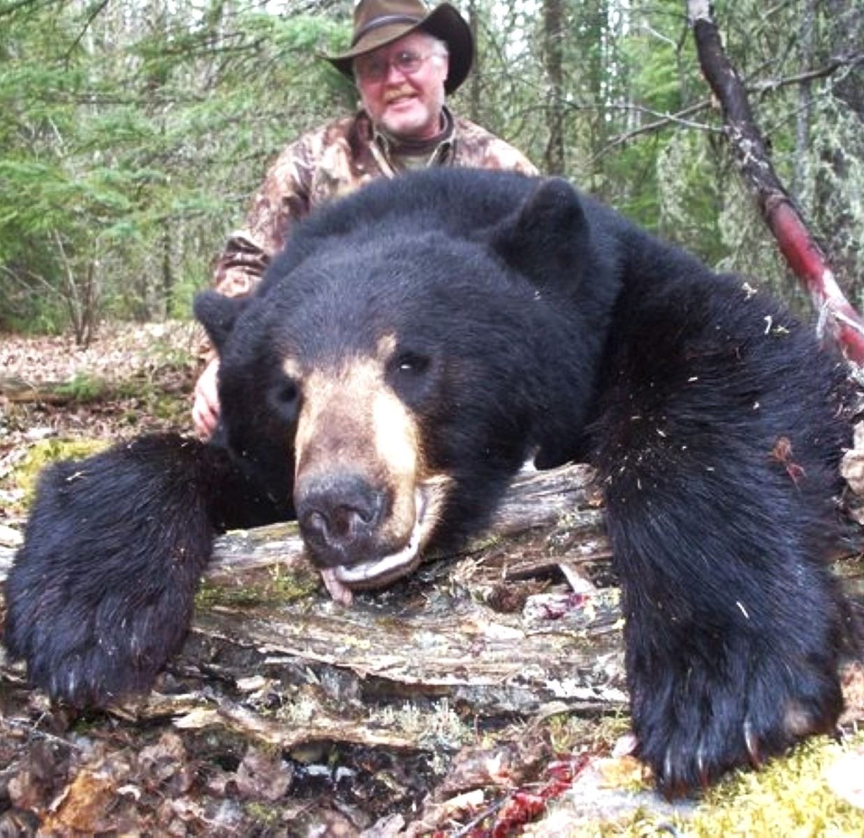 The hunt is in Northern Alberta where there is a large population of good size Black Bears. The bears in these areas have had 3 years to add to the population and gain some size because of the border closures over the last few years - they have not been under any hunting pressure during that time.  Bears are hunted over bait from tree stands or ground blinds or a spot and stalk hunt can be arranged.  We always encourage our clients to pay the $26.00 Canadian for the wolf license as well.