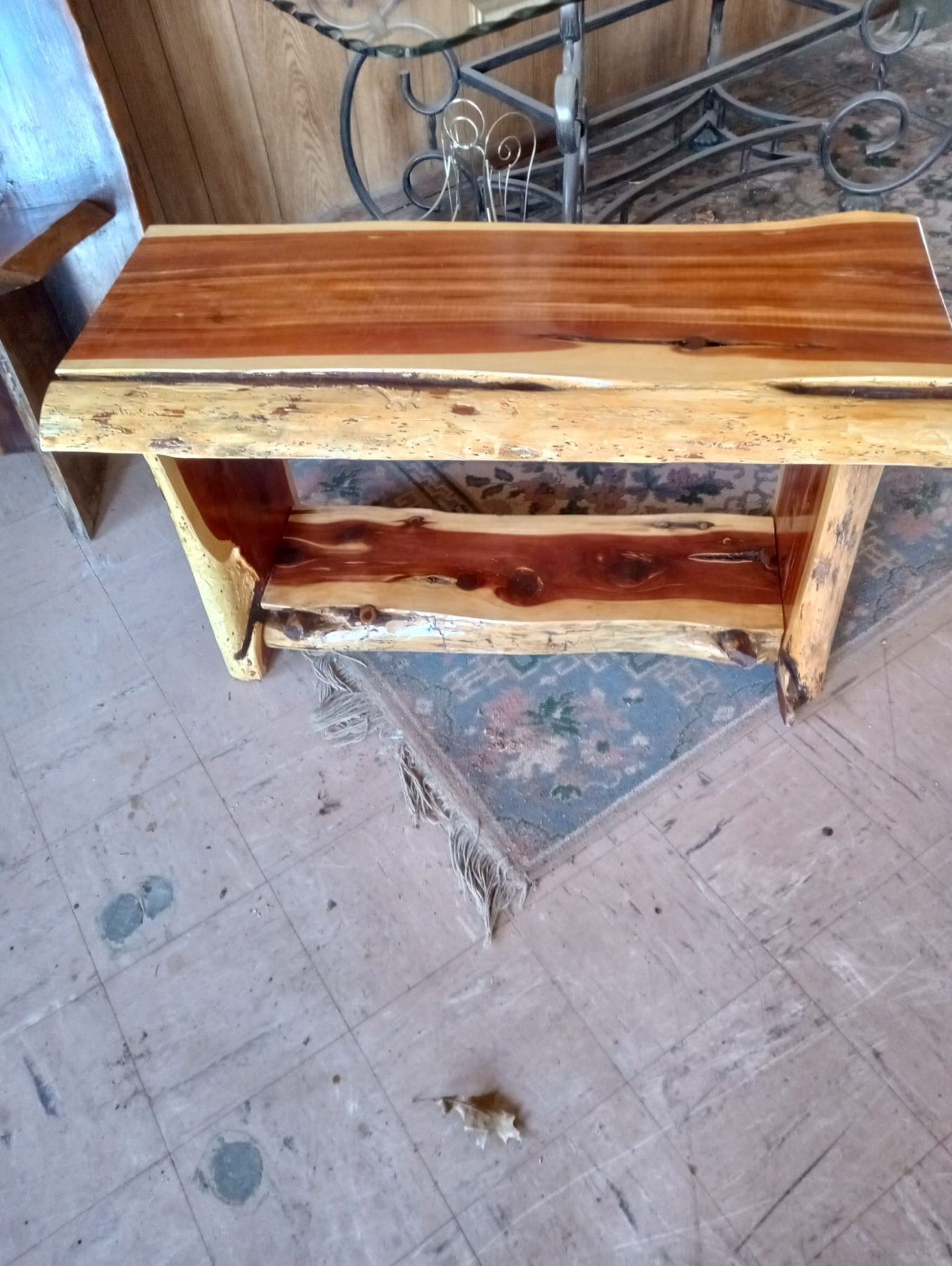 Kalvin Edwards of Twin Oaks Designs donates these beautiful pieces of hand-crafted cedar furniture. They would look great in your entry, your porch, your living room or wherever you want to show it off!