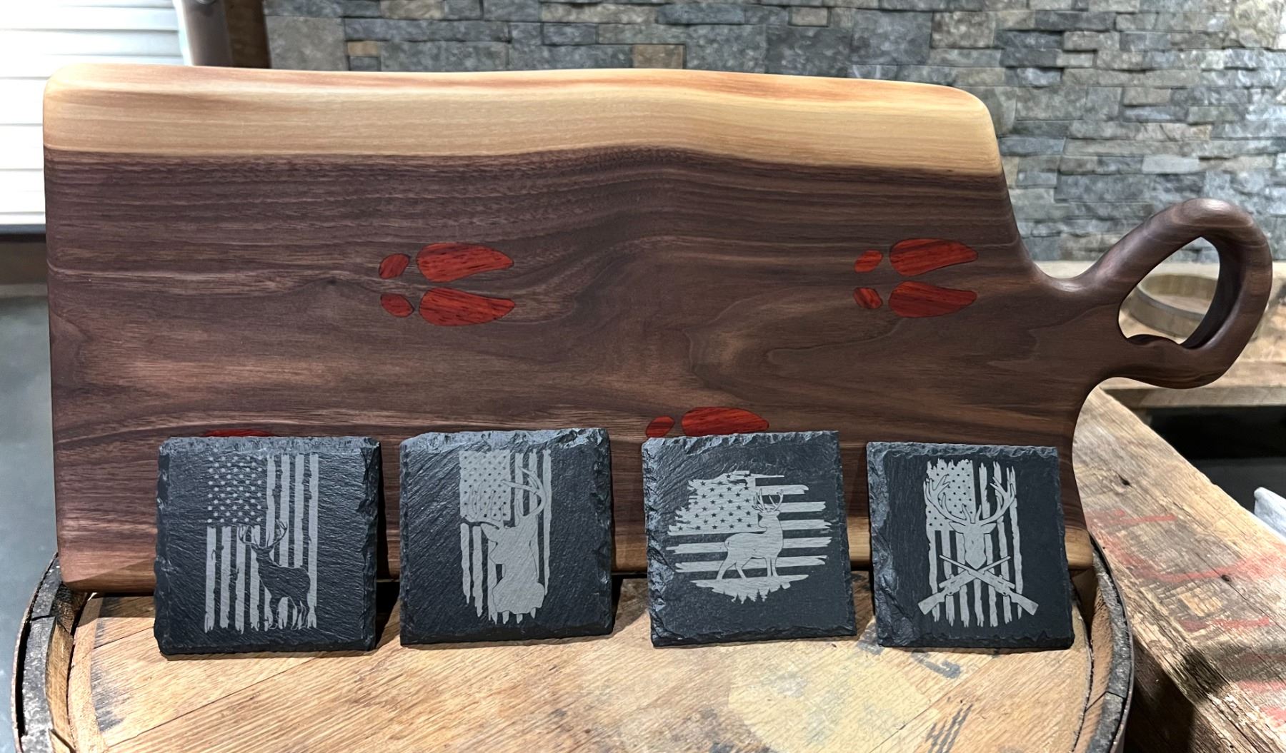 Charcuterie board and set of 4 coasters with board butter  Donated by: Frieling Woodworks, LLC
