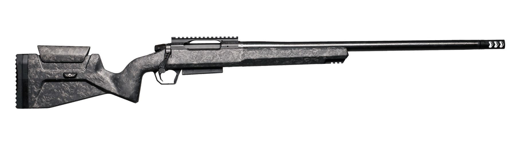 At its core is a Rem 700-style precision action riding under a 20-MOA optic rail, paired with a skeletonized bolt handle and oversized knob for fast, confident cycling in any condition. Up front, a free-floating, hand-lapped Aerograde® carbon fiber barrel delivers match-grade precision and is threaded, suppressor-ready, and capped with a premium side-baffle brake for staying on target shot after shot.