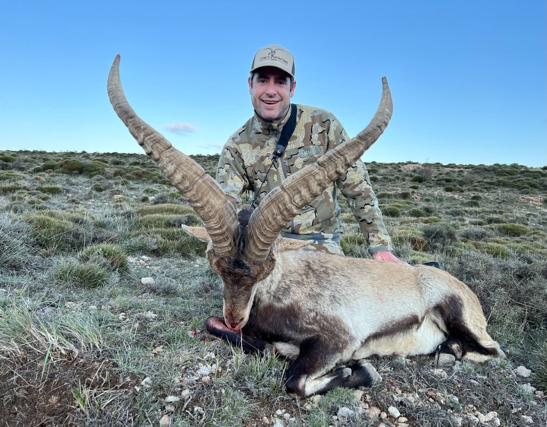 Spanish Ibex rifle hunt for Beceite Ibex for 2 hunters for 3 days in 2024 or 2025. Includes lodging in local hotel, food, trophy fees for 2 management Ibex up to 50" for  2 hunters to share, 1 guide for hunt, field prep, transpertation in field and Rifle to borrow. Non-hunters welcome at $250 per day.  Not included: $300 license, $250 Firearm permit if needed, $950 per hunter Tag, and a 21% VAT on donation value & final invoice.  You may upgrade to trophy quality Ibex and may add other species at list price. This is a private free range area near Teruel Spain.