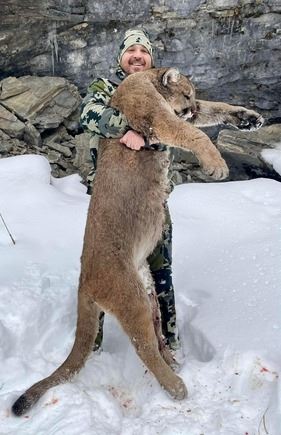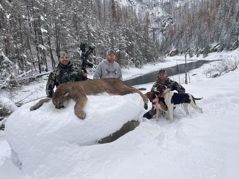 Russell Pond B Bar C Outfitters Mountain Lion: Cougar hunt Idaho with one of its top outfitters. This guided mountain lion hunt is 7 days, with 5 full hunting days. Mountain Lion Hunting with us is generally successful and always an adventure!