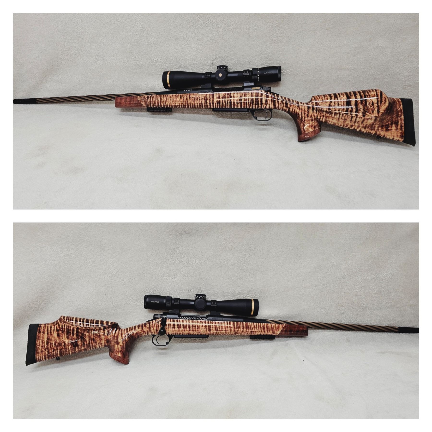 This year Chad has donated a custom 7mm PRC rifle with hand carved tiger maple stock.
