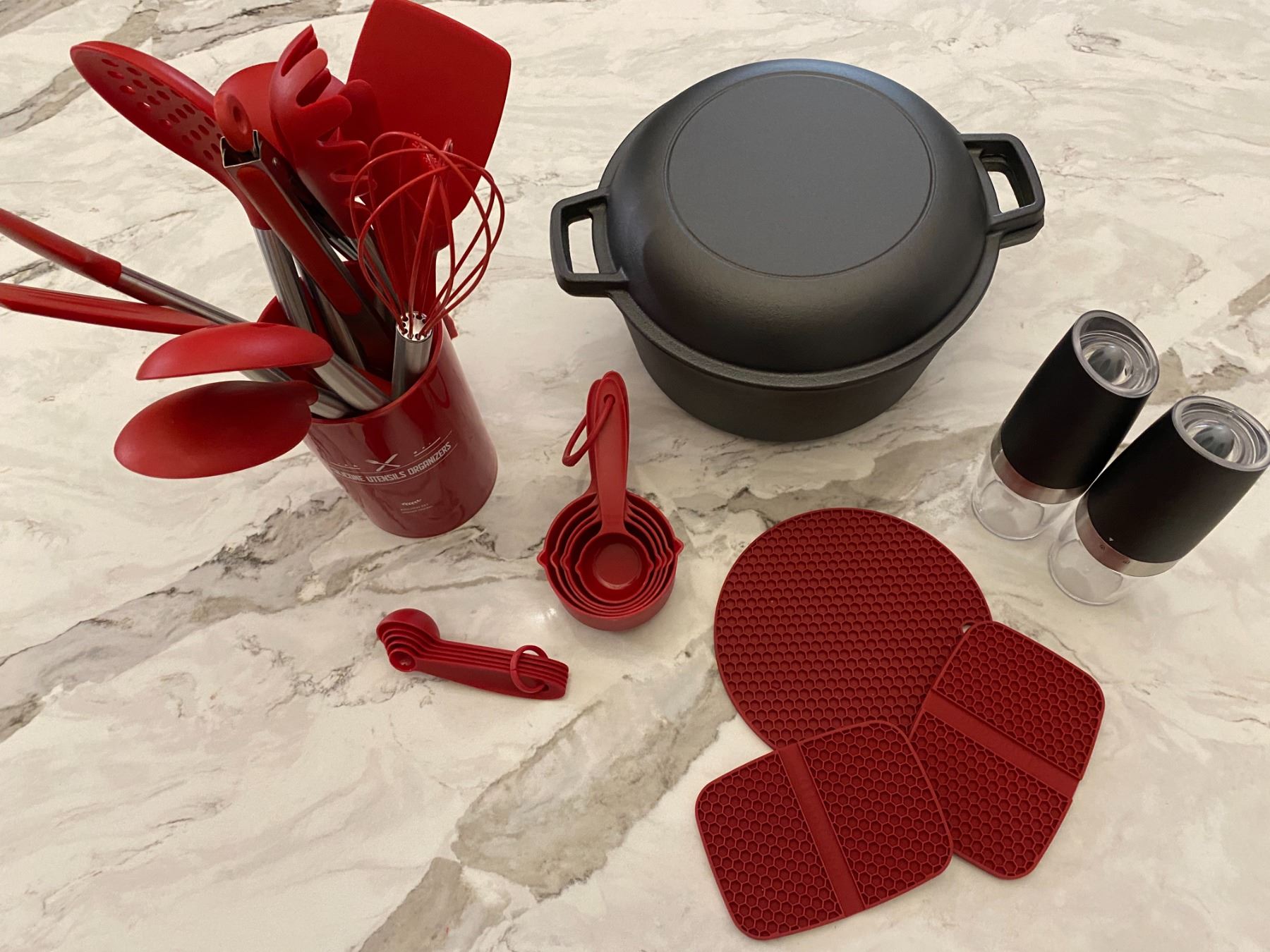 Double Use Dutch Oven With Grip Pads, 33 Piece Silicone Utensils and  Electric Gravity Salt & Pepper
