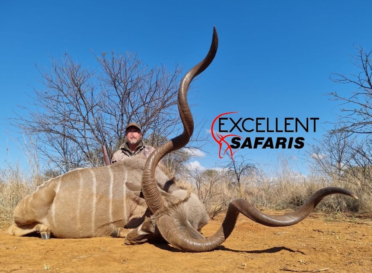 Hunt plains game in South Africa with Excellent Safaris for 7 days, 2 hunters. Hunters will share 1 sable and 1 kudu. Meals, lodging included. Not included: airfare, dip and packing, shipping, trophy fees on additional animals, rented rifles and ammo, any speical requested liquor, drinks, food, side activities, insurance and gratuity.