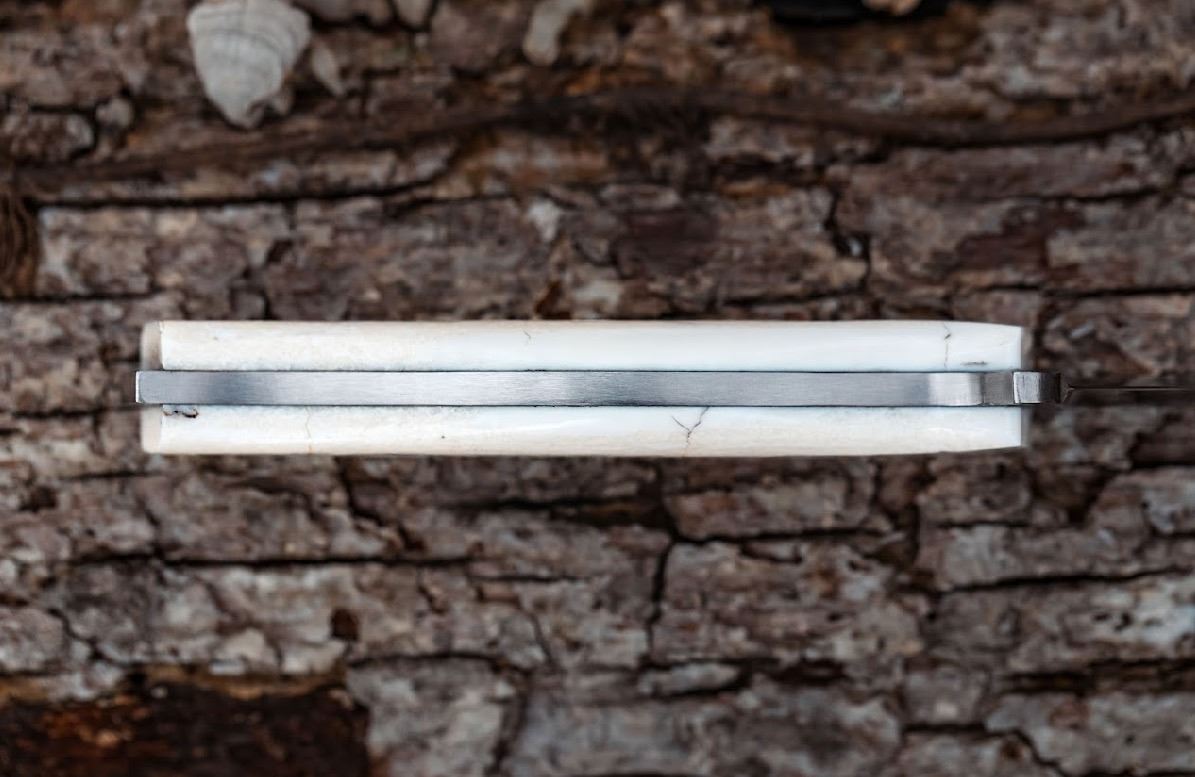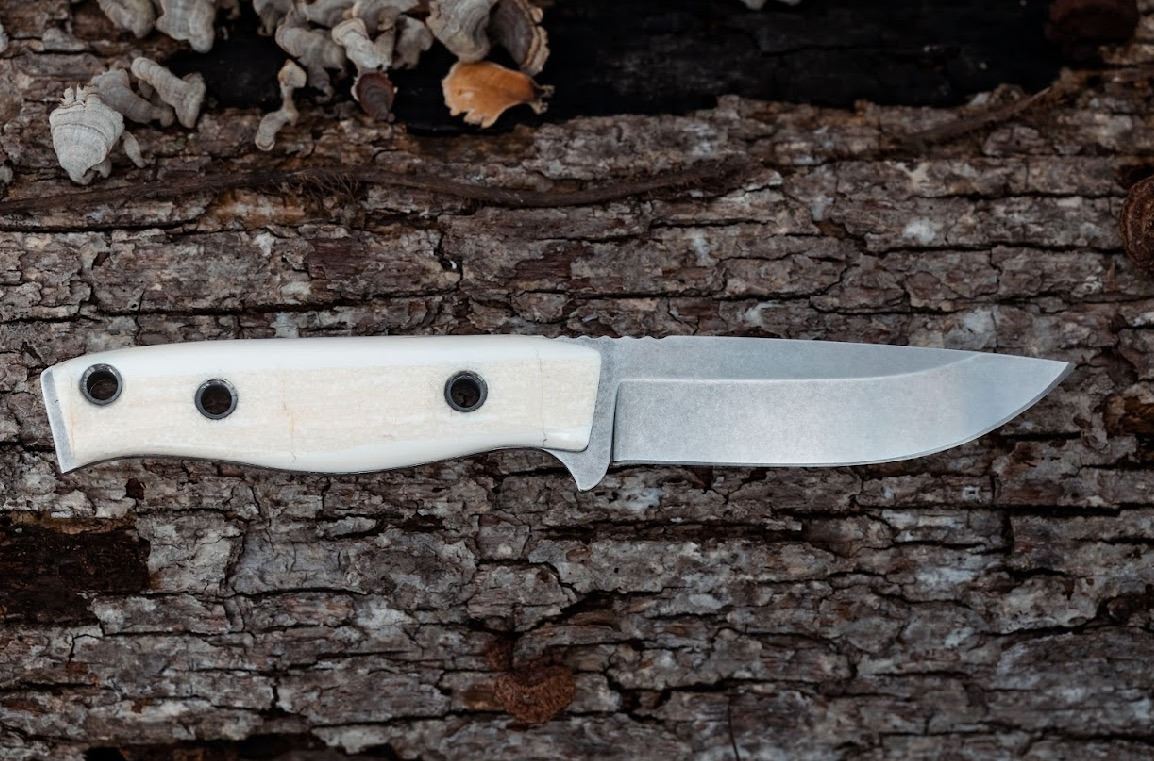 This exceptional knife embodies the rugged spirit of Alaska, boasting a 4” M390 steel blade, sabre grind, and a unique handle made from ancient walrus ivory.