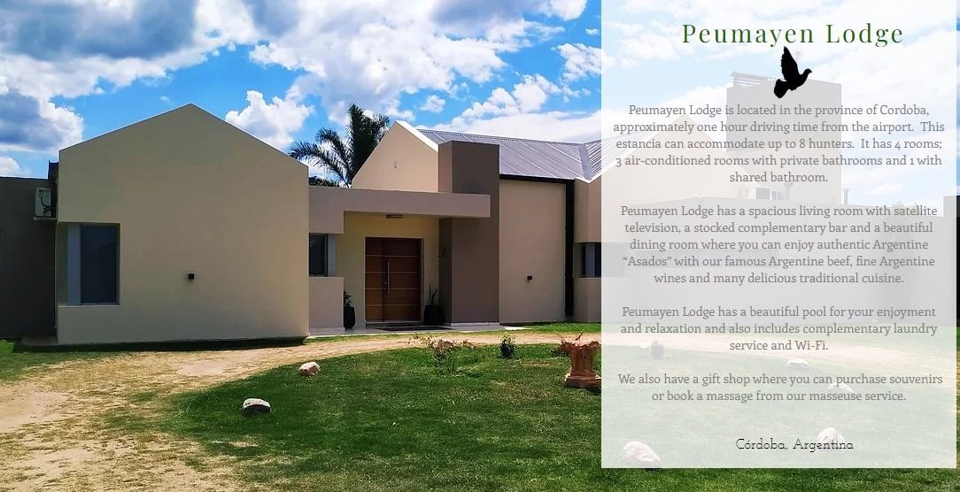 HP Wingshooting Adventures located in Cordoba, Argentina is donating a 4-Day high-volume Dove and Pigeon hunt for 3 hunters. The hunt can take place in 2025 or 2026 (March – September). Included in the hunt is 2 full days of high-volume dove shooting and 2 days of Pigeon hunting (Morning and Afternoon) for 3 hunters; all meals and accommodations in a private estancia; open bar with local beverages and liquors; full-service staff, guide, driver, bird boys, chef, and English translator. Not included: Flights to Cordoba, Argentina; ammo at $23.00 a box pay what you use; hunting license $425 per hunter; gun rental $350/hunter; airport/Lodge transfer fee $200 per/hunter; transfer between lodges $200/hunter; tips – Bird boys $50 per/day, $50 per day for lodge staff. Each of the 3 hunters is required to prepay $1,375 for hunting license (Dove & Pigeon), gun rental, field service fee and transfer per/hunter. Two hunters per room, single rooms will be a fee of $60 extra per day. Non-hunters $2,150 per/person. Additional hunters can be added for $3,875 per hunter. All prices are subject to change. Minnesota SCI thanks Debbie Gomez of HP Wingshooting Adventures for this 100% donation!