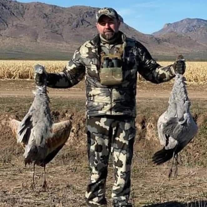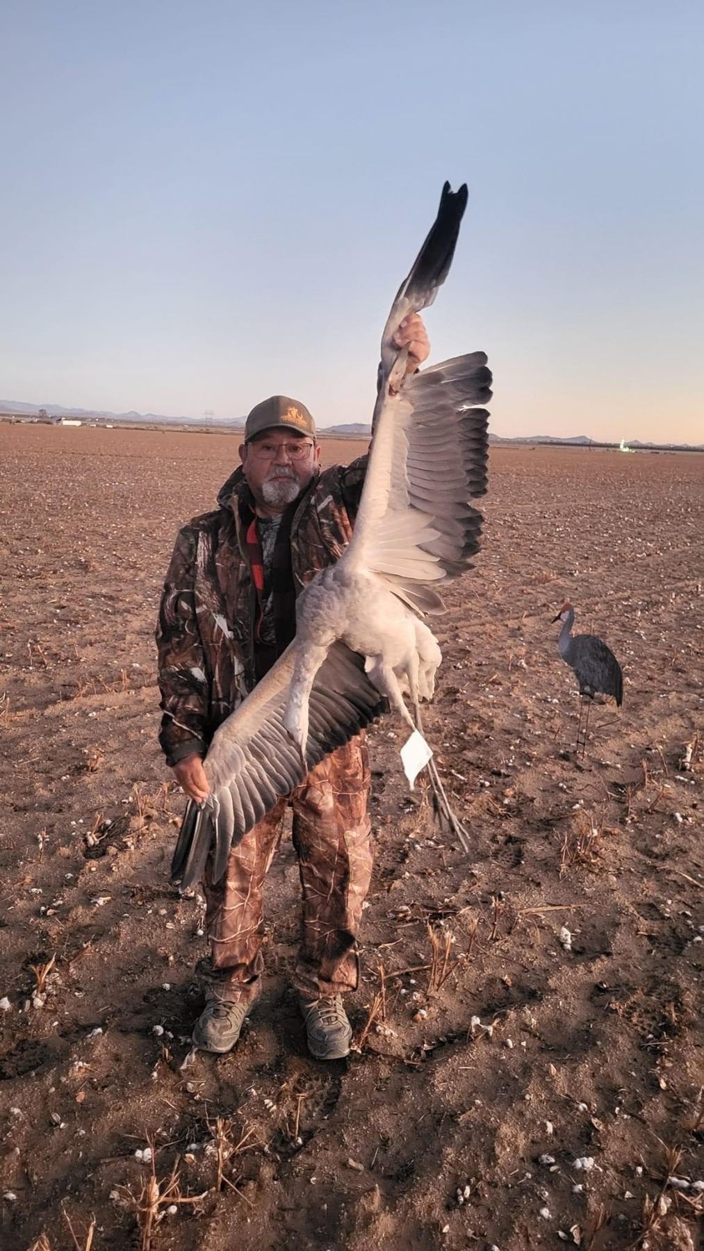 Arizona Sandhill Crane Hunt for up to 3 clients for 3 days or 3 tagged birds. No expiration date. This is a draw hunt. Each hunter has 3 tags. Draw happens in June and hunt is in November and December. Guide Only. Meet in Wilcox. Hunter is responsible for meals, lodging and transportation to Wilcox.