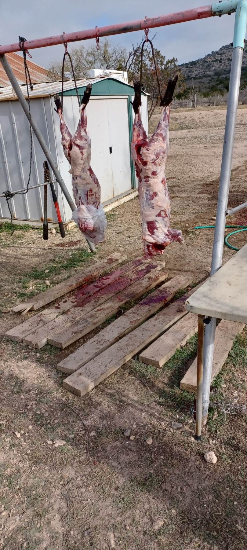 The 1,800 acre ranch is just SW of Ozona.  This hunt is conducted from blinds and includes guiding, meals and lodging (one room bunkhouse, with separate kitchen and 2nd bathroom).  Harvested hogs are skinned, quartered and stored in cooler/freezer until your departure.  Contact the outfitter for available dates and to arrange any other species in the area (exotics, trophy whitetail, etc.)