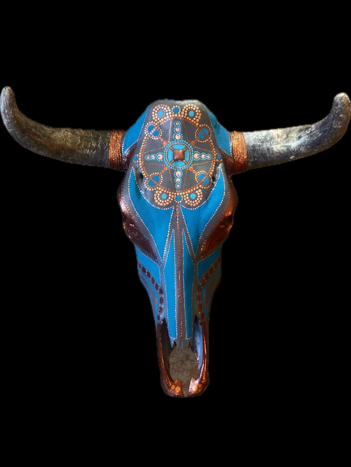 Hand Painted steer skull by local artist Jennifer Schrantz.