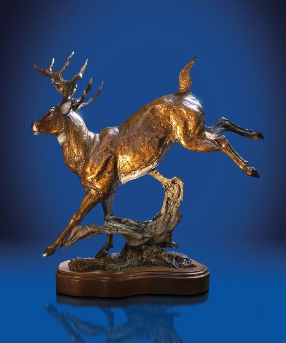 Treasure Investments is proud to present the masterpieces of the renowned and prolific artist, Lorenzo Ghiglieri. Lorenzo noticed a buck one day out on his property and sat and watched it for a time. He saw the elegance and knew that he had to re-create this moment, but needed the perfect instance. The buck was done with the area and as Lorenzo watched him leave, the buck leapt over a fallen tree, and Lorenzo knew he had caught the perfect moment