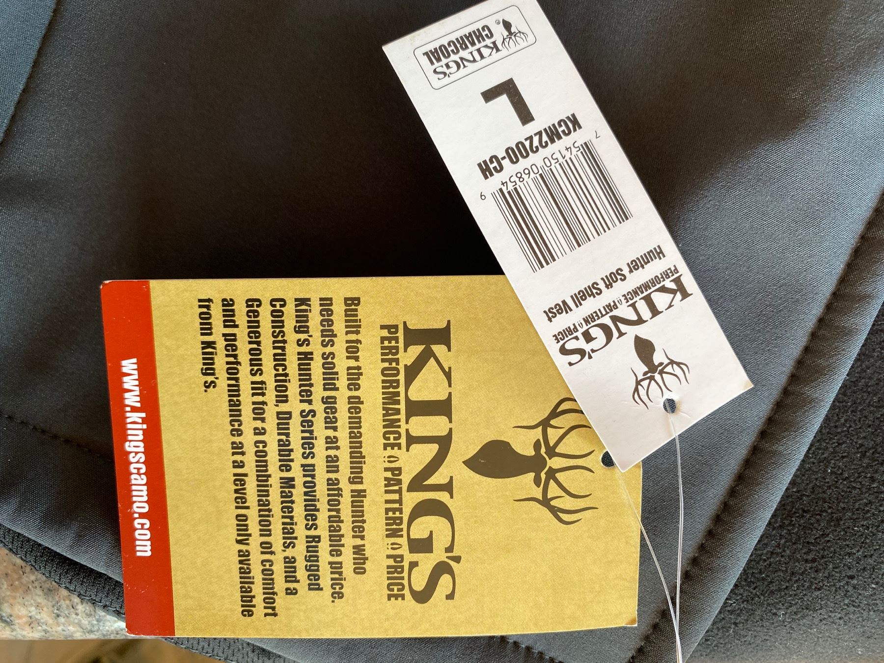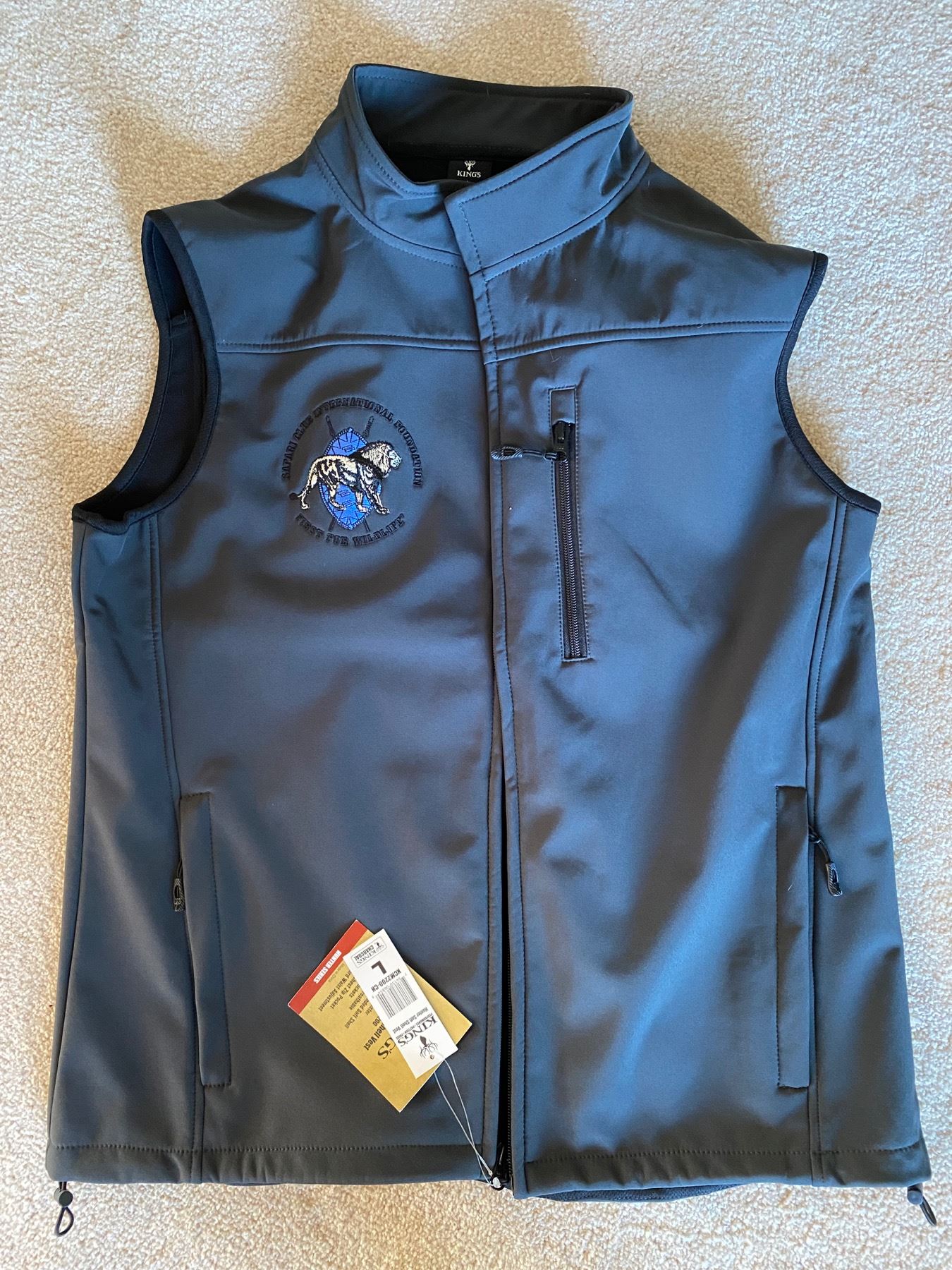 King’s Hunter Soft-shell vest with SCIF (SCI Foundation) logo embroidered. Size Large only.