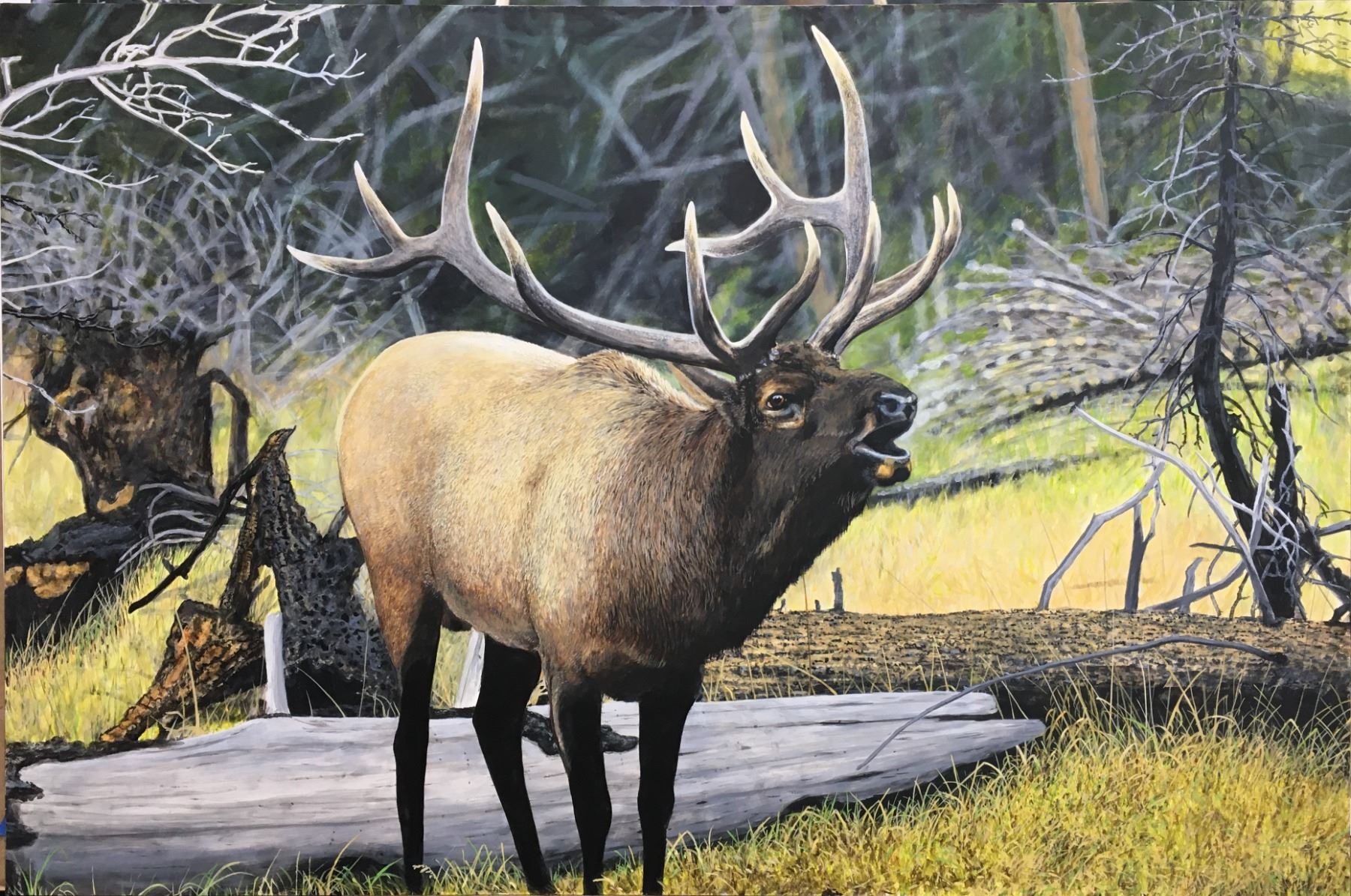 Award winning Minnesota artist Steve Hamrick has an original painting titled "Dark Timber Bugler."  This print depicts an elk bugling in the dark timber. It is 24" x 36". Steve is a Minnesota outdoors man, biologist, and lover of fine art. He has won many awards including the most recent 2020-2021 Pheasants Forever Artist of the Year, 2021 Minnesota Trout stamp, 2021 Minnesota Pheasant stamp and 2021 Minnesota Turkey Stamp.   This donation has a Reserve.