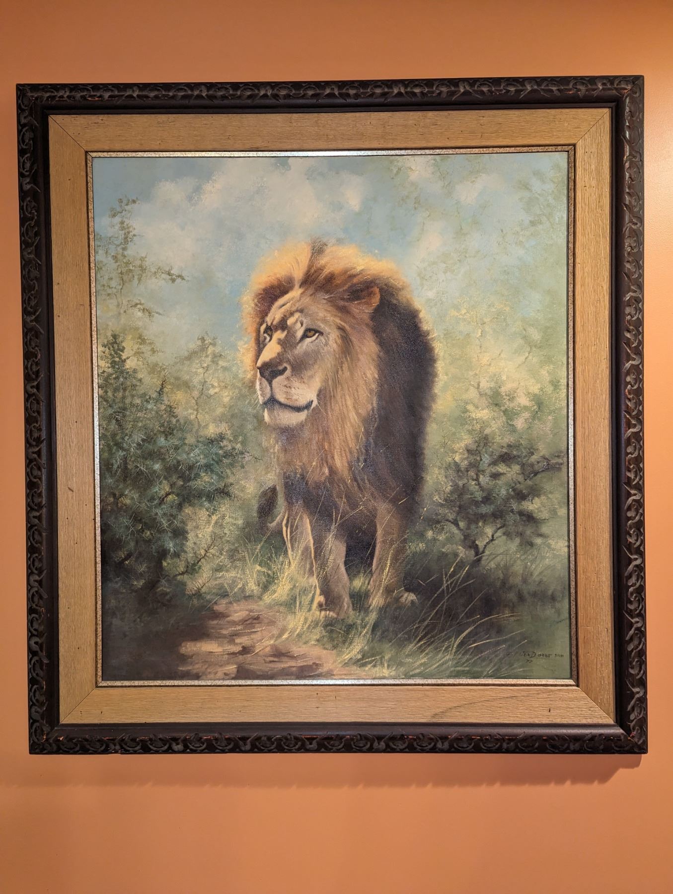 Paul and Sharon Robey, both Minnesota SCI Past Presidents, have generously donated this beautiful African Lion painting created and signed by artist Peter Darro in 1977. This is an original oil painting on canvas. Viewable art size is 35 1/2"W x 39 1/2"H.  Frame measures 47 1/2"W x 52"H.  This wonderful piece of wildlife artwork will be a beautiful addition to anyone's home, cabin, or business place. The painting is in mint condition and has an appraised value of approximately $10,000.  The back of the painting includes a paper with a short biographical details of Peter's Darro's artistic career.  Let's show our appreciation to Paul & Sharon Robey for the amazing donation of their taxidermy collection and artwork to Minnesota SCI!!  Minnesota SCI would like to thank Paul and Sharon Robey for this 100% donation! All proceeds from this donation go towards the Paul & Sharon Robey Scholarship Fund.