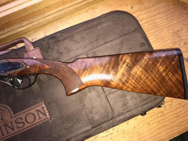 Dickinson Arms - SCI 50th Anniversary Edition Shotgun, 28-gauge Over/Under Shotgun. Dickinson Arms Plantation Series over & under shotgun. Premium trigger plate mechanism with cosmetic side plates. Combines the latest modern CNC technology and CNC-machined lever mainsprings with old-world craftsmanship and attention to detail. Each receiver is machined from a solid billet of moly-chrome steel and finished with genuine bone charcoal case hardening for beauty and durability. Features hand oiled premier grade Turkish walnut stock and fore-end with oil finish, 24-line per inch fine hand checkering, and comes with five thin-walled chokes, wood checkered butt plate, manual safety, English scroll engraving, and carrying case.  All proceeds from this donation go towards the Paul & Sharon Robey Scholarship Fund.
