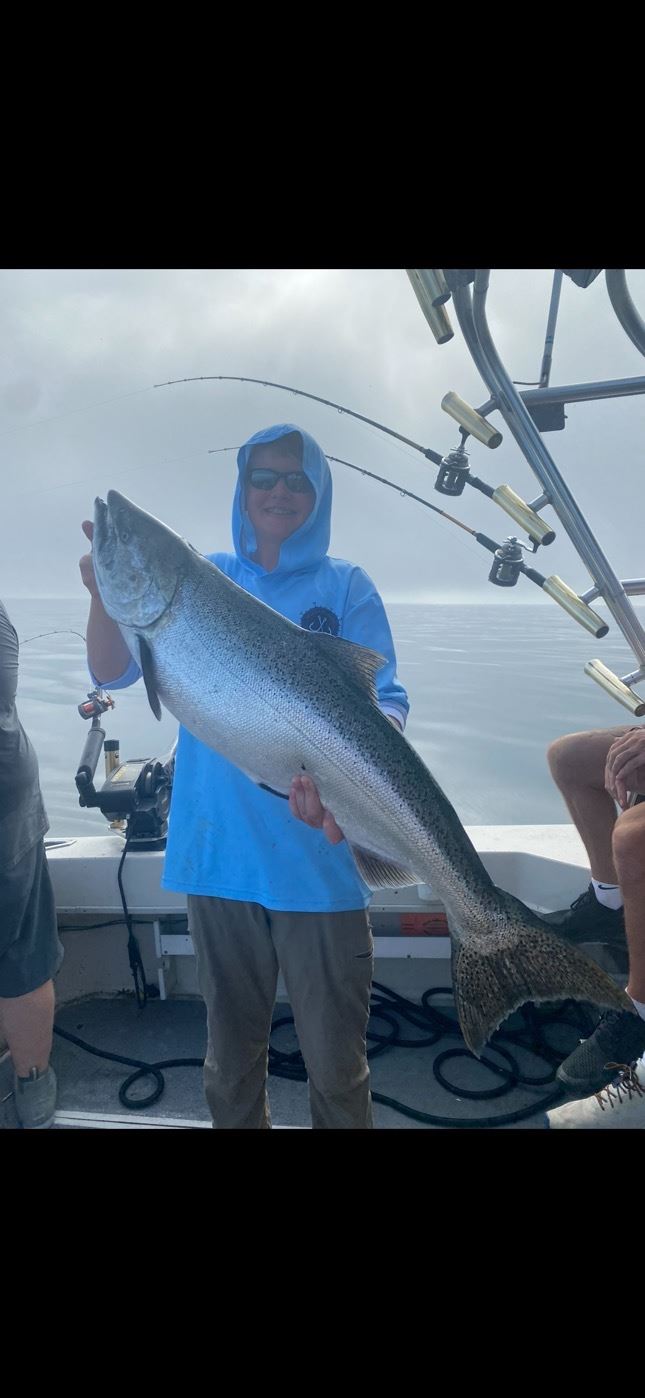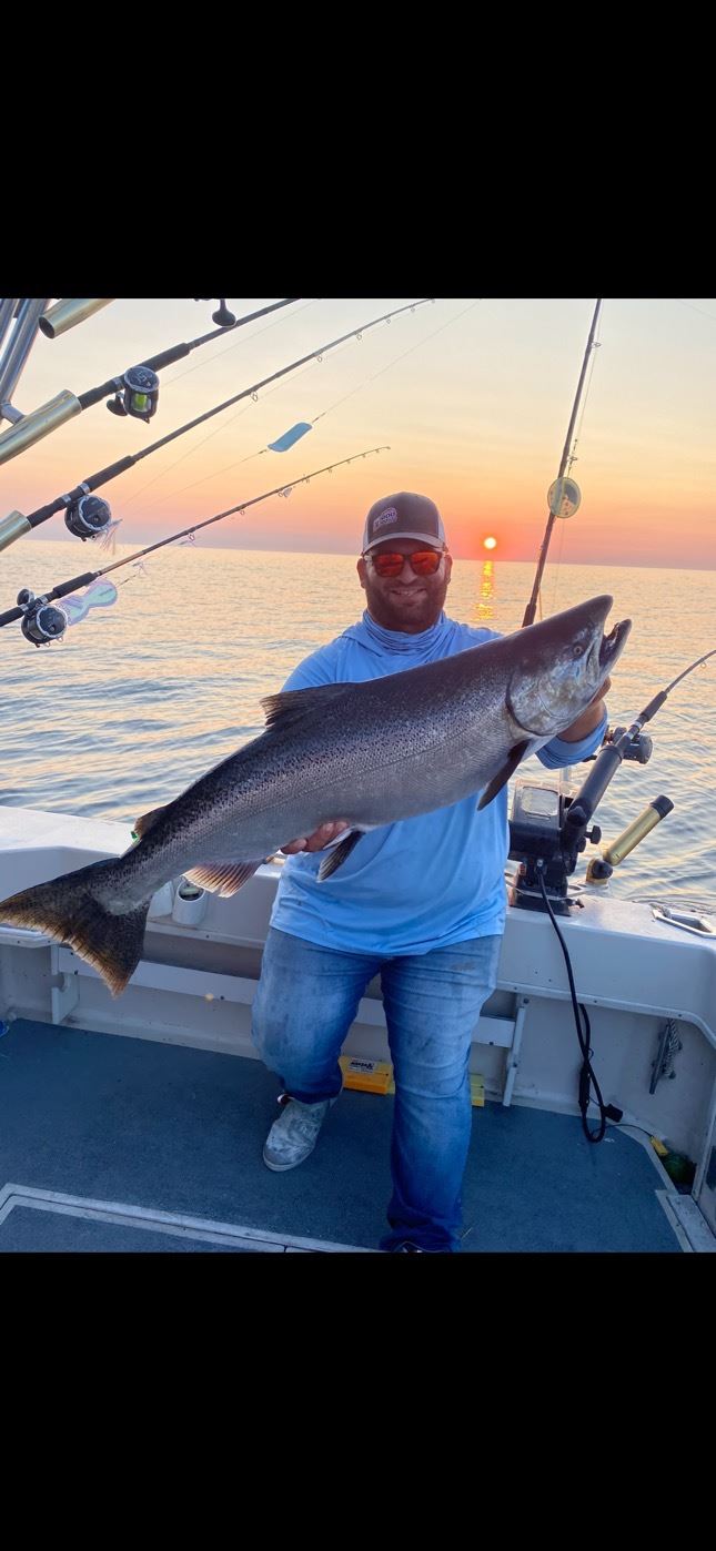 You will be fishing on board "The Reel Ginger." This 30-foot power boat is equipped with the most up-to-date electronics and fishing equipment. Starting point is Yatch Basin Marina in Holland, Michigan. Your day starts at dawn, and you will fish until early afternoon. All rods, reels, and tackle are provided. A Michigan fishing license which can be purchased online or at a local fishing and sporting goods store is required before you take the charter. Make sure to bring a cooler with you with your favorite snack and drink to keep you nourished while you reel in your fish. You can use the cooler to bring home your catch too! The fish will be cleaned for you at the dock. Your trip is to be scheduled on open dates April through August of 2026 on a date which you can coordinate with Powderhorn Sportfishing. Captain Tim Becker has over 25 years of fishing experience on Lake Michigan, and he works hard for your fishing success. This is a great day of fishing! Just as one of the dozens of our chapter members who have fished with Captain Tim.