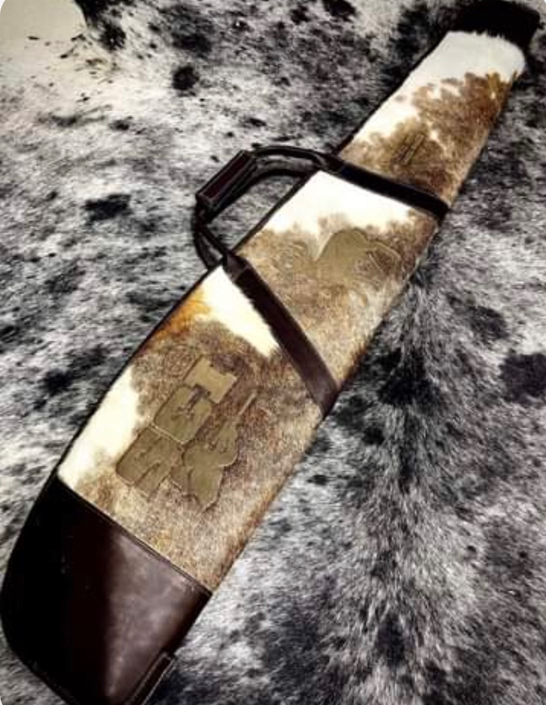 Lethal Creek Laser Works Cowhide Rifle Case. SCI Logo Embossed Lady Rifle and Deer Brown Leather and Cowhide.