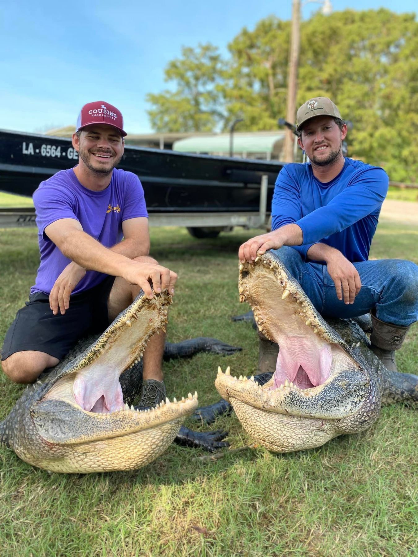 Two hunters will drive to hunting camp near Lafayette LA for a three-day, two night adventure (one hunting day).  This one-of-a-kind hunting day starts with each hunter checking 15 baited alligator line sets, baited the previous evening.  Before shooting with a gun, hunters typically haul in 5-10 gators each from the line sets, and each hunter will select one gator as trophy.  After lunch hunters will have the opportunity to hog hunt, bow fish, bait fish, or participate in shrimping or crabbing at outfitter’s discretion, based on current game activity.
