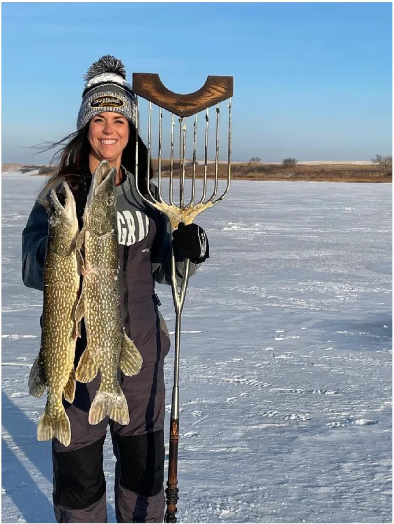 Adventure: N. Dakota Pike Spearing for 2 Anglers, 3-days/3-nights all-inclusive adventure. All meals, lodging, cold beer, and guides are included. You can spear up to 5 northern pike a day per angler! Hunt giant northern pike through the ice with custom made trident spear, as you sit inside a warm ice tent with a cocktail in hand. After spearing these prehistoric cold water predators, we can try our hand at ice fishing for walleye.