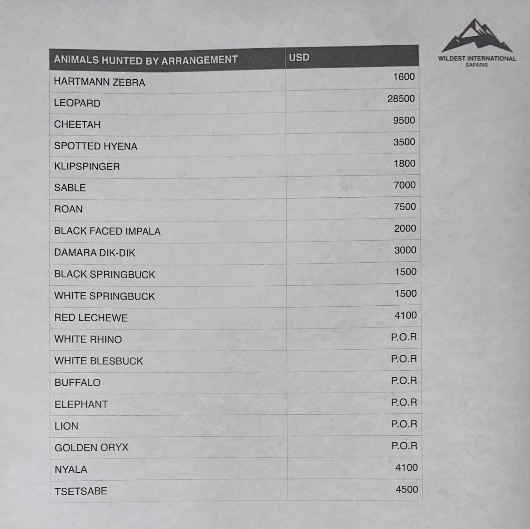 Important NOTE: Our program requires that each of the 3 hunters takes at least 1 extra trophy outside the donation package. The donation is only valid for 3 hunters.