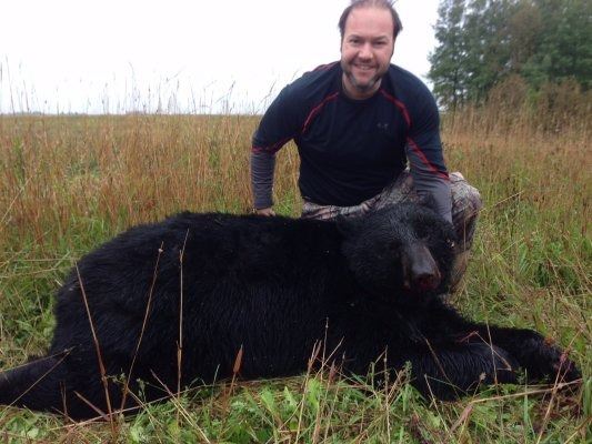 5 day, 2 x 1 black bear hunt over bait. Hunt across 3 huge Bear Management Areas covering 3500 sq km in Kapuskasing, Ontario. Average bear weighs 200-300 lbs, but 400-500 lbs Bruins possible. Color phase bears fairly common, also. Over 90% kill opportunity! Spring Season, May 15 - June 15, 2022/2023. Hunter can use rifle or bow and must secure his/her own weapons permit. Additional hunters ($1500) encouraged and observers ($750) welcome. Can be upgraded to include ducks and grouse ($500). Not included: transportation to and from airport, and to and from hunting area. Clients responsible for their own vehicles and fuel--can rent a pick-up or SUV; those with a private plane can arrange to land at the Kapuskasing Airport. Not included: meals, beverages, laundry, license ($250), trophy and field preparation ($100), transport of trophies ($150). Note: It is the winning bidder's responsibility to know any international travel requirements