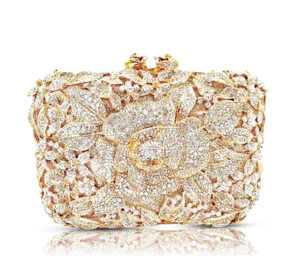This stunning purse is bejeweled with SWAROVSKI Crystal Elements, inspired by Royalty, Celebrities, First Ladies, Princess Diana, Elizabeth Taylor, Audrey Hepburn, etc.