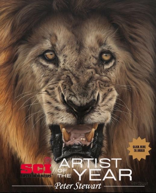 Custom Framed Lion print titled “Raw” autographed by the SCI Artist of the Year, Peter Stewart. Peter is a South African wildlife artist who has developed an international reputation for his highly representational wildlife art, and this print is exemplifies that. The winning bidder is responsible for packaging and shipping costs if not picked up at auction.