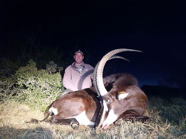 Dave Davenport of Leopard's Valley Safaris has donated a 7-day 1x1 guided sable bull antelope rifle hunt for 1 hunter and 1 non-hunting observer in Eastern Cape, South Africa. With access to over 190,000 acres of game rich land in the Karoo region of the Eastern Cape, Leopards Valley Safaris offers some of the best fair chase hunting for animals anywhere.  This hunt is to be taken in 2022 or 2023 and includes one up to 40" mature sable bull antelope, daily fees for 1 hunter and 1 observer guided 1x1 by a professional hunter and his staff for 7 days, all meals and luxury accommodations with WIFI, water, soft drinks, beer and wine; daily laundry service; and recovery and field prep of your trophies.  Not included are fees for additional days, additional trophies, additional hunters, or additional observers; dipping, packing and shipping of your trophies; airfares; taxidermy and gratuities.  This donation also excludes arrival and departure days at $195/person plus 15% tax, and airport pickup and return at $600 per vehicle.  Any of 30+ additional plains game animals may be taken per the current price list, and a larger sable may be taken for additional cost.  Additional hunters are welcome at $350/day each and additional observers are welcome at $195/day each.  Rifle hire is available at $30/day plus ammunition cost.  Port Elizabeth, South Africa is the arrival and departure location.  This donation is given in good faith to SCI, to help support their worthy causes.  With this in mind, we do not allow 2 donation hunts back-to- back, or at the same time, by the same group, nor gifting or reselling this donation to somebody else.  For further details and to book your hunt contact Dave or Nikki Davenport directly.