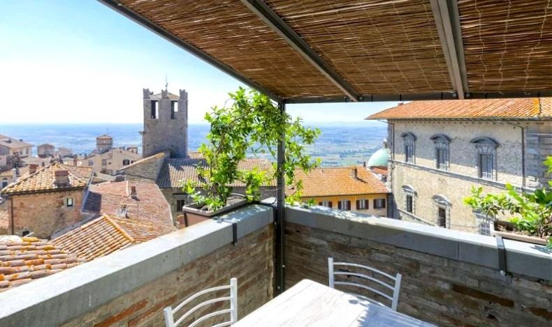 Pass through arched Etruscan gates as you make your way to your historic apartment in the medieval hilltop town of Cortona. Situated in the central square, your accommodation blends authenticity with 21st century luxury, from vaulted wood ceilings, antique stonework, and delicately frescoed walls to two elegant bedrooms with walk-in showers.