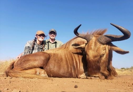 The seven hunting days will be in the Northwest Province of South Africa.   Includes Trophy fees for 1 Golden Wildebeest, 1 Blue Wildebeest, 1 Black Wildebeest and 1-Blesbuck to be shared by the two hunters.    Method of take is rifle only, 30-06 caliber or bigger.   Alternative weapon to bring is a shotgun for bird shooting.  An export permit from the US is required to bring any weapons into South Africa.  Arrival/Departure point will be Johannesburg or Tambo International Airport.  Includes: Meals and accommodations during the 7 days within hunting area, 2x1 guide, transportation during hunts, and field preparation of trophies.  Not Included: Airfare, costs for arrival/departure days and airport transfers (charged @US $210 per person per day excluding 14% tax), dipping and shipping of trophies.  Hunters can upgrade for extra trophies, additional hunting or touring days at normal rates.  WINNING BIDDER MUST CONTACT THE OUTFITTER WITHIN 3-MONTHS OF PURCHASING THE HUNT TO RESERVE DATES FOR THEIR SAFARI.  Safari tours to Botswana, Kruger Park, Pilanesberg Park and other destinations can be arranged at extra cost. This is a Safari Hunt package.  No credit will be allowed towards a photographic safari. This hunt is available for the 2023 or 2024 season.  We thank Jacques Senekal for his generous 100% donation.