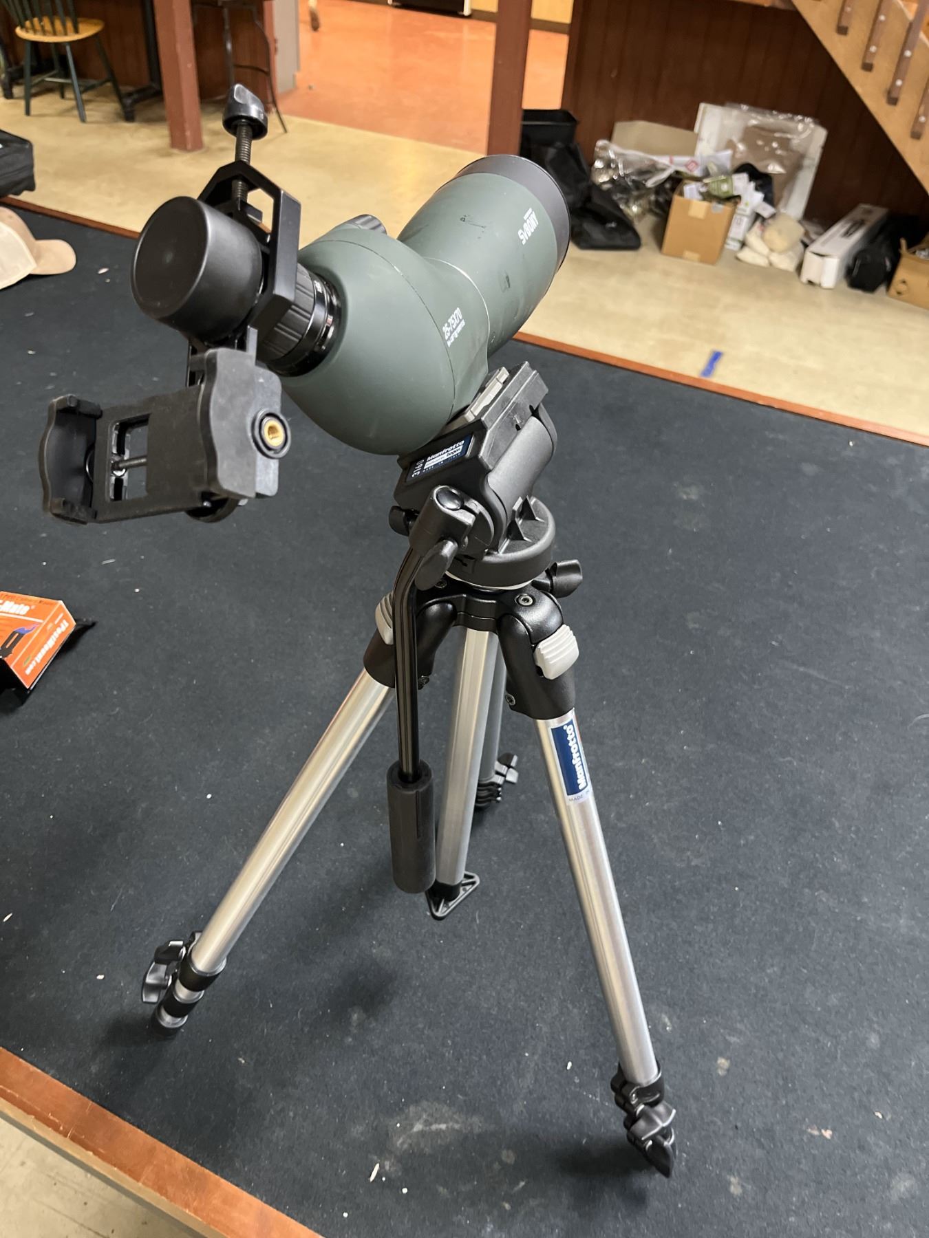 SvBony Spotting Scope.  25-75x70 includes tripod and smartphone adaptor, Primetime Bucks XIII Videos set of 3, tactical backpack, Uncle Henry Pro Hunter knife, power stick charger