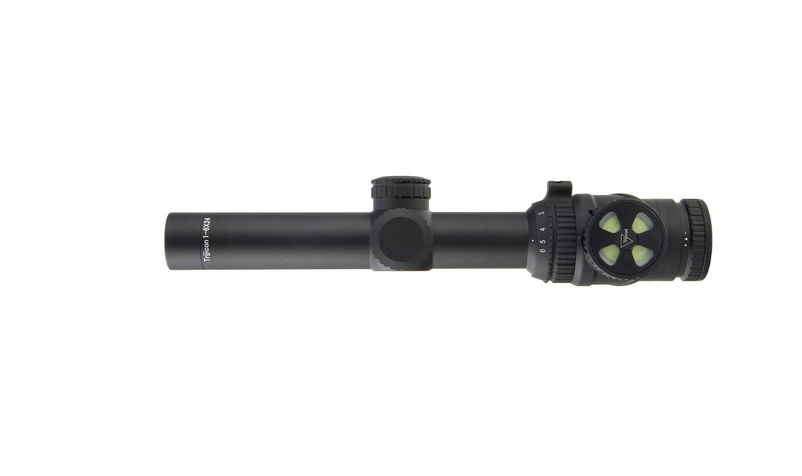 This is a donation of a Trijicon 1-6x24 Trijicon AccuPoint riflescope with Duplex Crosshair with green dot reticle. The scope is illuminated through the use of fiber optics and tritium, providing a vivid aiming point that speeds target acquisition and extends available shooting hours without the need for batteries.  Control the brightness of your fiber optic aiming point with the innovative illumination dial and have confidence with your shot placement in low light when the tritium kicks in.  Designed to stand up to the elements, the Accupoint maintains the refinement needed for precise windage and elevation adjustments with no tools.  The multi-layer coated lenses provide superior light transmission.  The Accupoint also provides an easy focus eyepiece and long eye relief.  This scope comes with a Trijicon logo sticker, a lens pen, a set of lens caps, an Accupoint Scope manual and a warranty card.