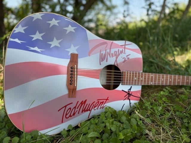 Ted Nugent Signed American Flag Guitar
