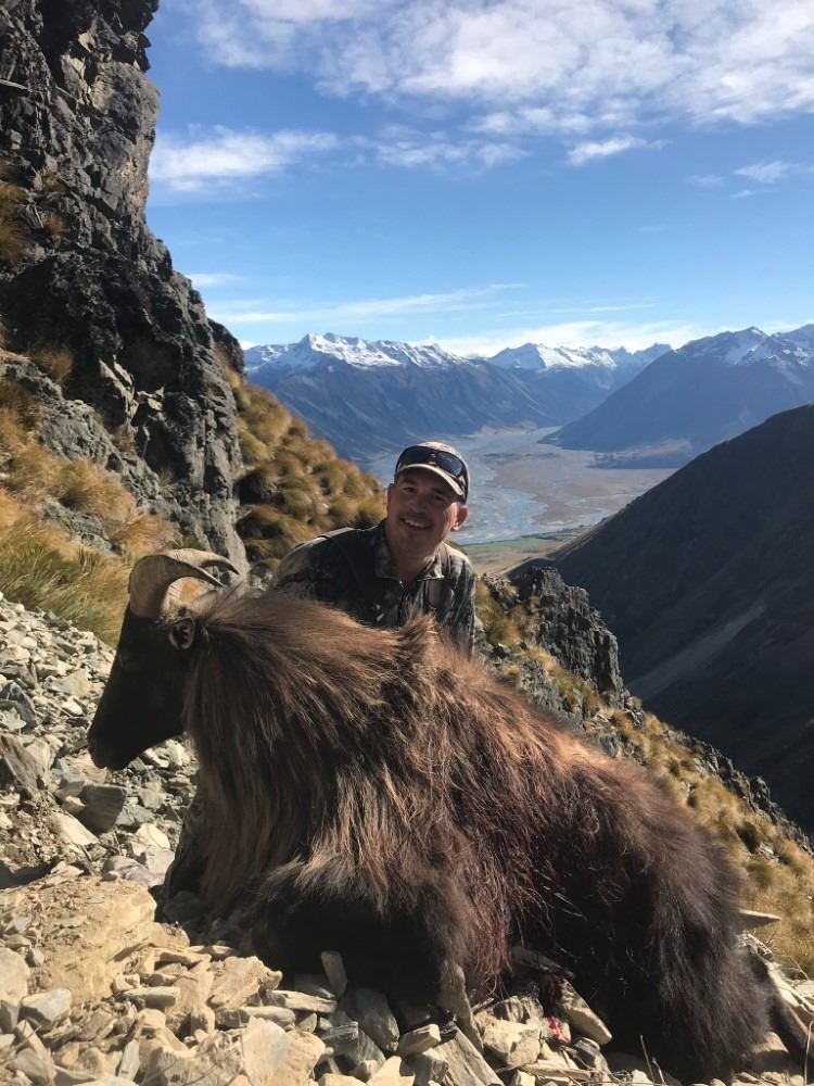 **Exhibitor**  Himalayan Tahr are the kings of New Zealand’s alpine terrain. Bulls begin to move into the nanny groups at the end of May and will stay with these groups until the end of August. Tahr are hunted in the Westland and Mt Cook areas. Planning wisely is required to obtain a trophy bull. The terrain, climate and the bull Tahr’s habitat all add up to challenges that are often daunting on first appraisal of a trophy in more ways than one. This is a 3 day 1x1 hunt for 1 hunter and 1 non for 2024 or 2025 Apr - Jul. This hunt may be upgraded to add other species. Included are loding, food, beverage, guide, skinning,field prep, and phenominal views. Outfitter will provide firearm at no charge or you may also use archery.