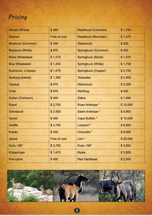 - Extra Trophies Animals (https://trompettersfontein.com/pricing.html)