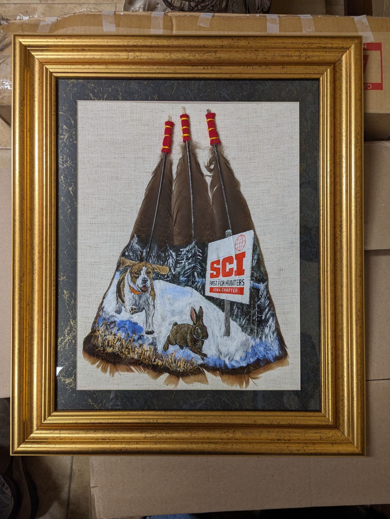 Own this original and unique piece of art! Artist Ron Willis of Linwood, North Carolina donates framed and matted nostalgic piece titled “My First Safari with Grandpa” of a beagle and rabbit on three wild turkey feathers. This one-of-a-kind artwork is ready to be hung in your home or office. Buy it now, it’s your only chance, as you’ll never see another! E-mail: Willisart@rocketmail.com.