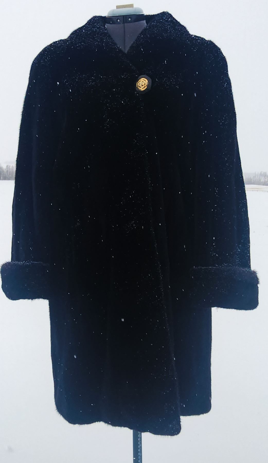 This stunning Black Mink trotter Jacket (approximately size 12) from Canada Majestic's Creation Aphrodite Collection is a stunning example of the pinnacle Canadian craftmanship. This vintage Coat is in pristine condition with no stains, damages and would be the perfect addition to any fur collection.