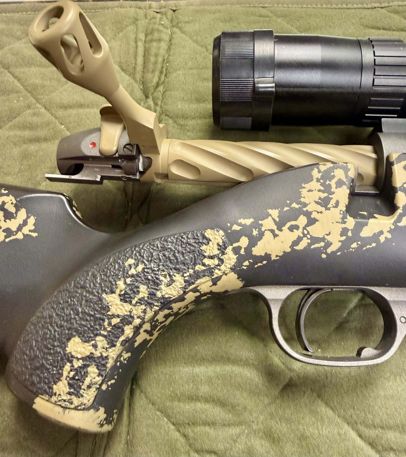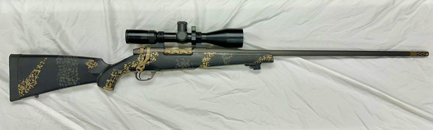 With the Huskemaw scope it is a high-performance, long-range hunting system. Those who are familiar with Weatherby know that the Mark V has the world’s best and strongest action. The rifle is topped with a Huskemaw 5-20 x 50 scope designed specifically for extreme range, featuring 1/4 MOA adjustment clicks and high-density glass for superior clarity. The scope is mounted in Talley rings and includes a Vortex bubble level.