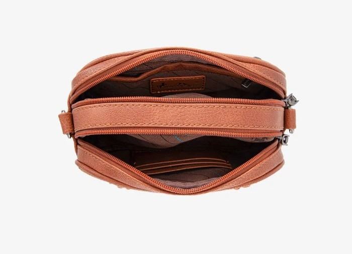 Montana West Floral Tooled Cow Print Duffle Bag, Floral Tooled Concealed Carry Shoulder Bag, and Tooled Whipstitch Crossbody Bag. Duffle: Made of vegan leather, Floral tooled with hand coloring on the front, Whipstitch detail, Cow Print pattern, Interior padded compartment and zipper pocket, Top double leather handle(Drop: 7"), A trolley sleeve and a zippered pocket on the weekender bag's back, Detachable and adjustable shoulder strap included (Drop: 23"-28"), 18.5"(L) x 10"(W) x 15"(H). Concealed Carry Shoulder Bag: Vegan Leather Material: Crafted from premium vegan leather for a cruelty-free, eco-conscious design. Artisanal Floral Craftsmanship: Features hand-tooled floral patterns with meticulous hand coloring and whipstitch detailing on the front. Edgy Accents: Accented with antique silver studs for a bold, vintage-inspired aesthetic. Dual-Sided Leopard Print: Vibrant leopard-print fluff and printed designs adorn both sides of the tote crossbody bag. Secure Closure & Organization: Top zipper closure ensures safety, while interior zip pockets and compartments keep essentials neatly stored. Concealed Carry Feature: Includes a discreet open pocket and zippered pocket on the back for secure, hidden gun storage. Versatile Carrying Options: Equipped with a 10" top handle and adjustable, detachable shoulder strap (26"-29" drop) for hands-free convenience. Compact & Spacious Design: Measures 13"L x 4.5"W x 11.5"H with a large interior capacity, balancing portability and ample storage. Tooled Whipstitch Crossbody Bag: Made of vegan leather, Floral tooled on the front, Whipstitch detail, Top dual zipper closure, Interior zip pocket and card slots, A zipper pocket on the back, Adjustable and detachable shoulder strap (Drop: 23"-27"), 8"(L) x 3"(W) x 6.5"(H), Interior Capacity: Small.
