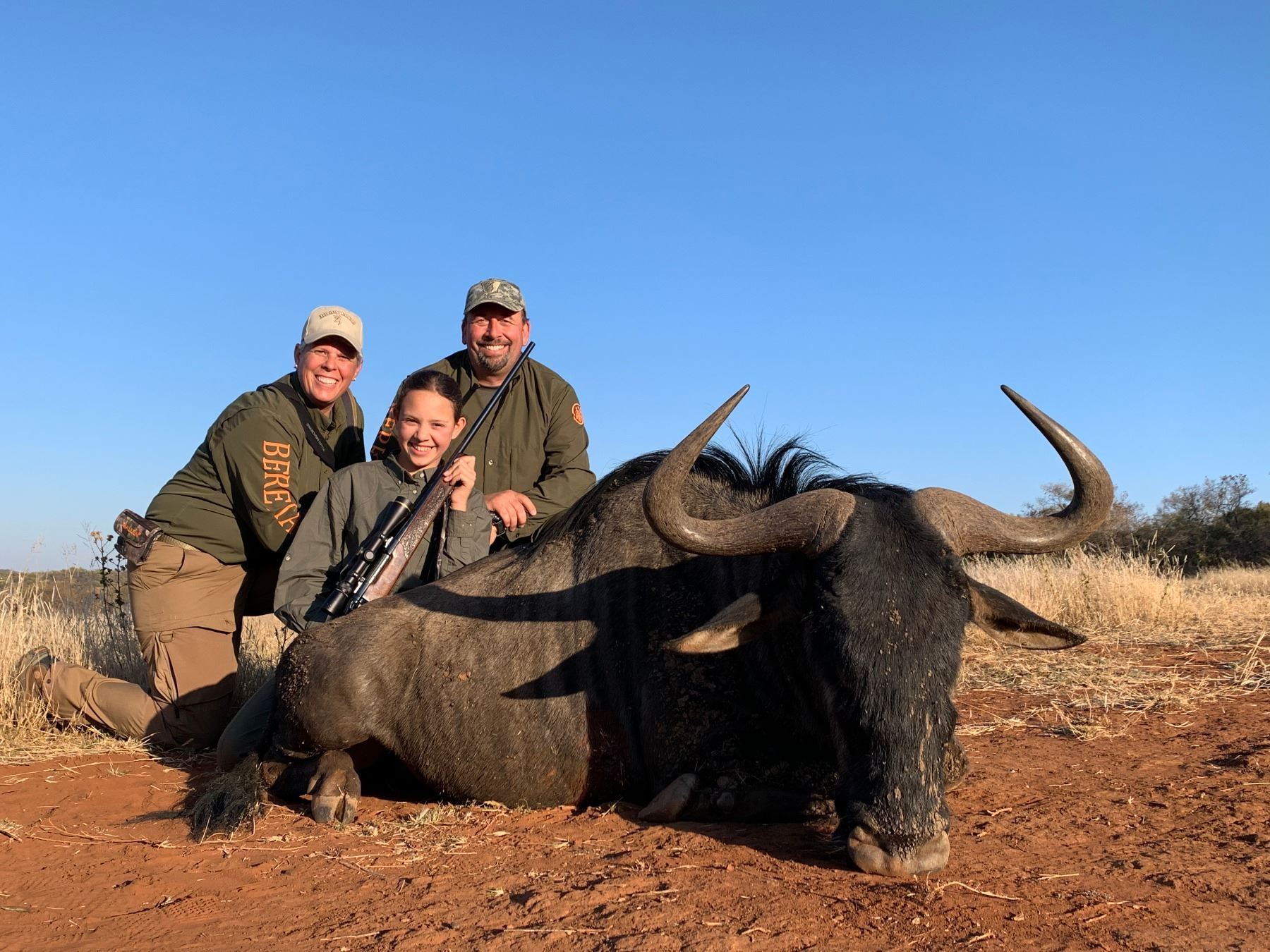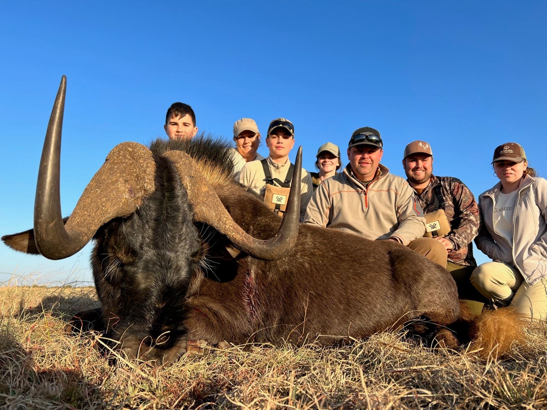 Hunt: Wildebeast Slam for 2 Hunters (2x1) and 2 observers in S. Africa. Trophies: Golden Wildebeest x 1, Blue Wildebeest x 1, Black Wildebeest x 1, to be SHARED by the hunters.