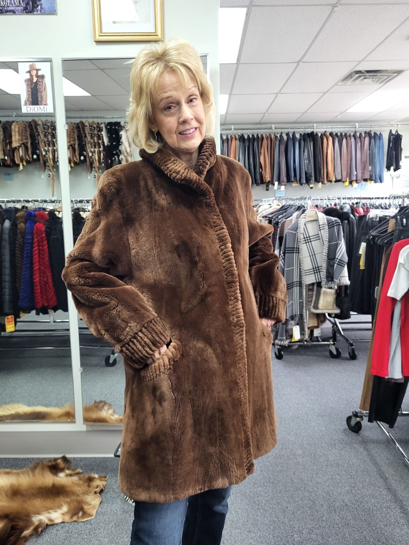 Item: Women's Cognac Sheared Canadian Beaver Stroller. Very warm and perfect for our cold winters in Michigan. Dress it up or wear it with your Jeans.